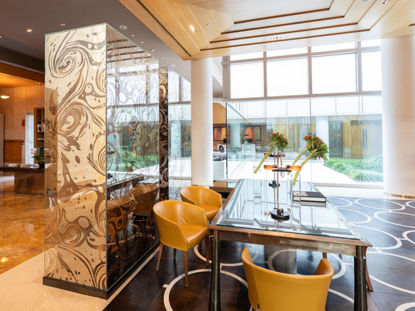 Graphics by Artist Lisa Stimpson Fabrication (eglomise, palladium leaf) by Synergraphic artisans.